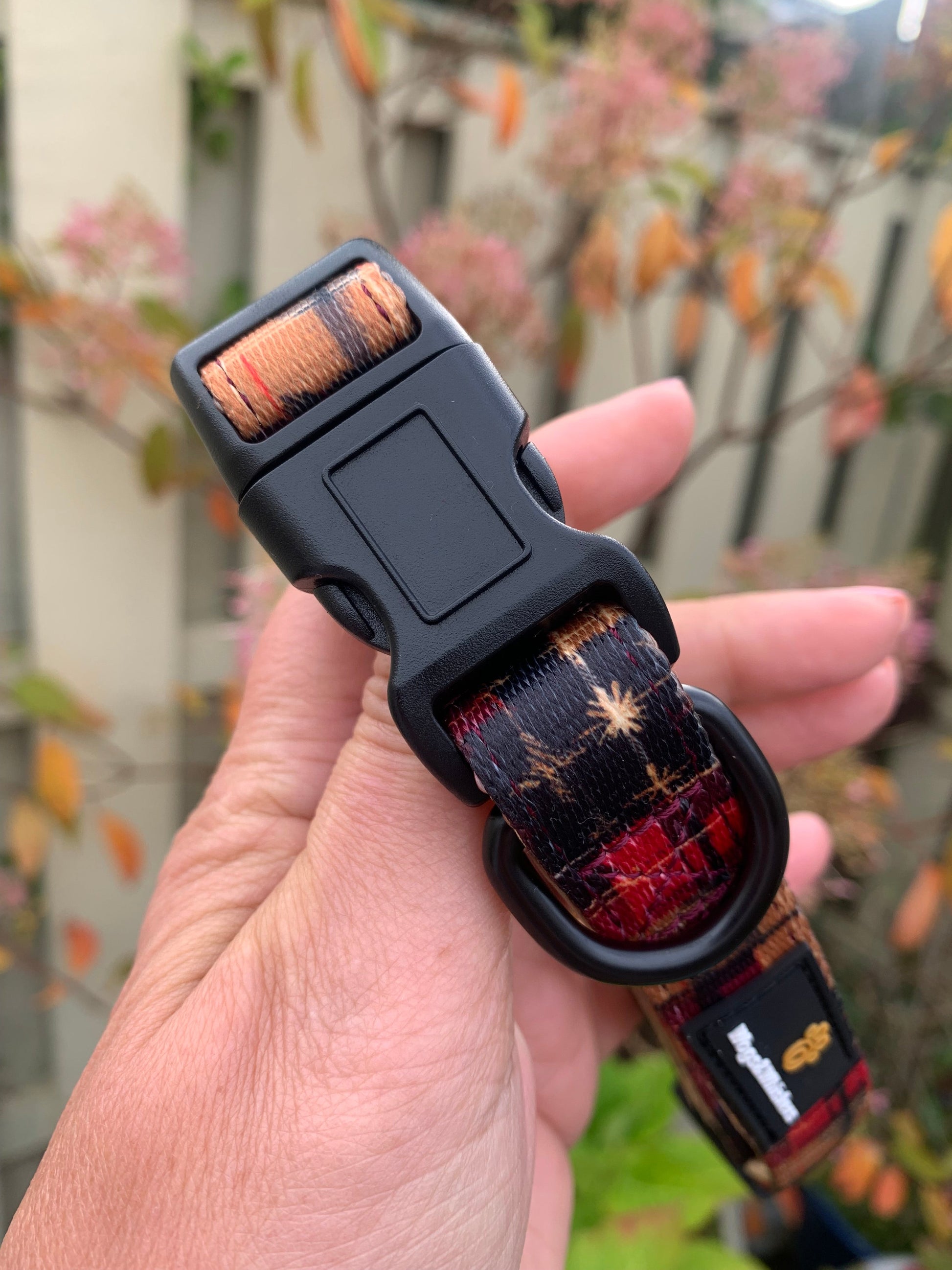 Designed by our team, this beautiful black, gold, and red plaid collar is festive, luxurious, and stylish. Made with sturdy, machine-washable material, it ensures long-lasting wear while keeping your furry friend looking fabulous.