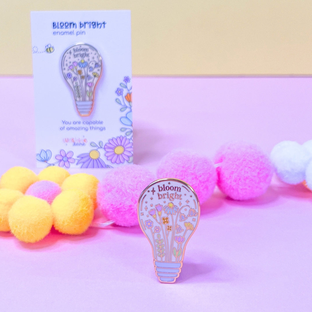 Shine your light! This pin features a lightbulb blooming with wildflowers, a beautiful reminder of your inner strength and potential.