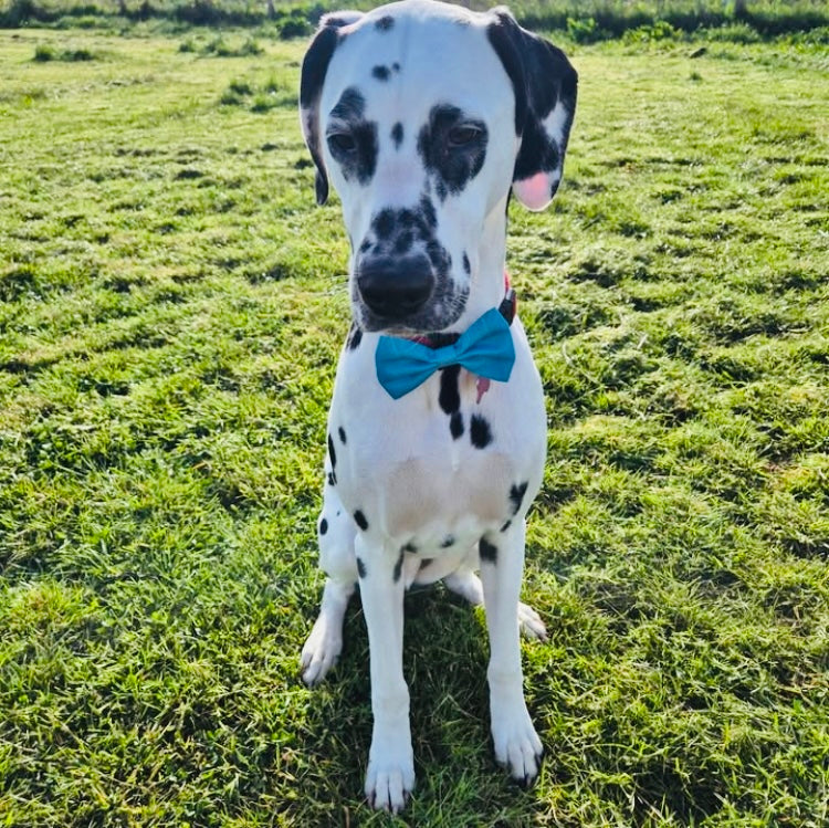 Bring some flair to your furry friend's wardrobe with this charming bow collar embellishment made in a gorgeous turquoise blue colour to compliment our limited edition Bonnie and Arran collections of harnesses and collars. This unique accessory will make your pup stand out in style during daily walks, doggy dates and special occasions. Whether you love blues, bows or simply adore cute details, these embellishments are a perfect choice to style your pet.