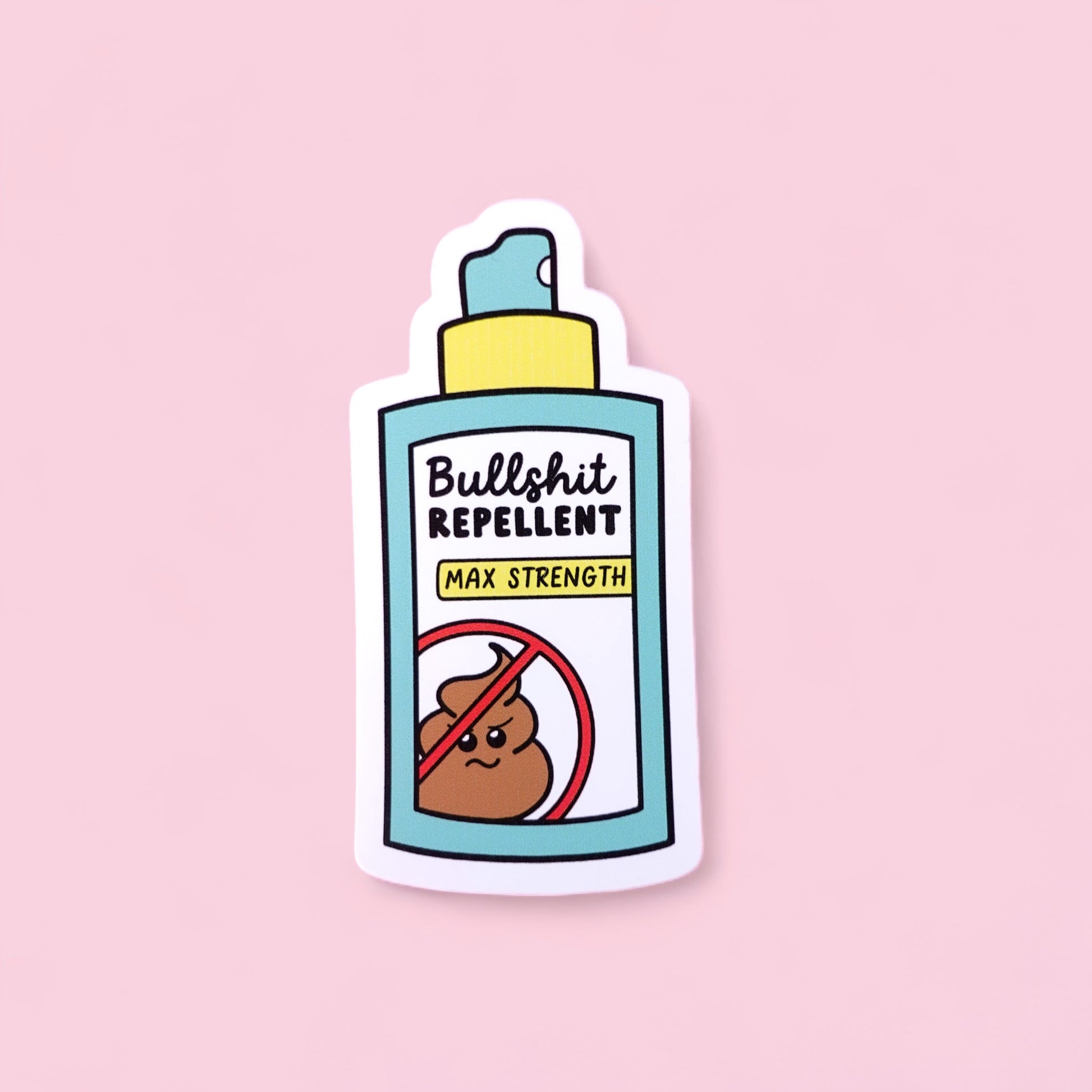 The Bullshit Repellent sticker playfully resembles a bottle of bug spray. It's your witty shield against verbal pollution! Featuring a comical poop icon within a striking red ‘no' symbol, it’s a fun reminder that you can fend off any nonsense coming your way and keep things authentic.
