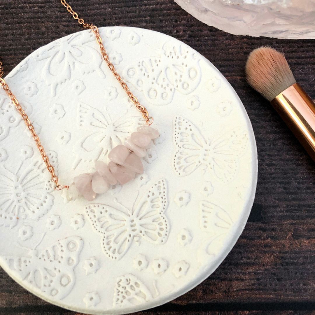 This beautiful, textured clay trinket dish is a stylish home for your rings, earrings, and other small trinkets.