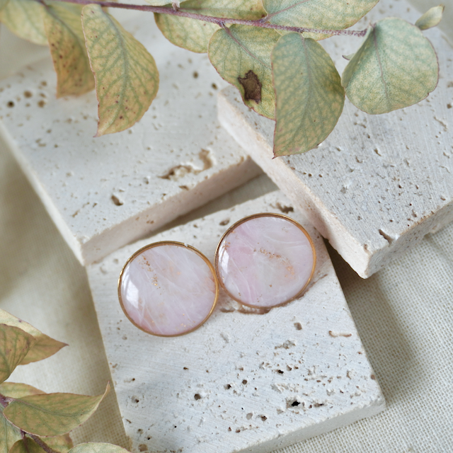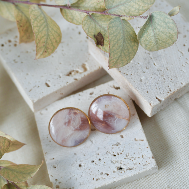 The creative process to craft the unique colour and stone like effect involves a mixture of translucent polymer clay, combined with an array of inks and metal leaf in such a way that achieves a one-of-a-kind finish. To complete the process, it is topped with a transparent resin to really highlight the colour and sparkle!