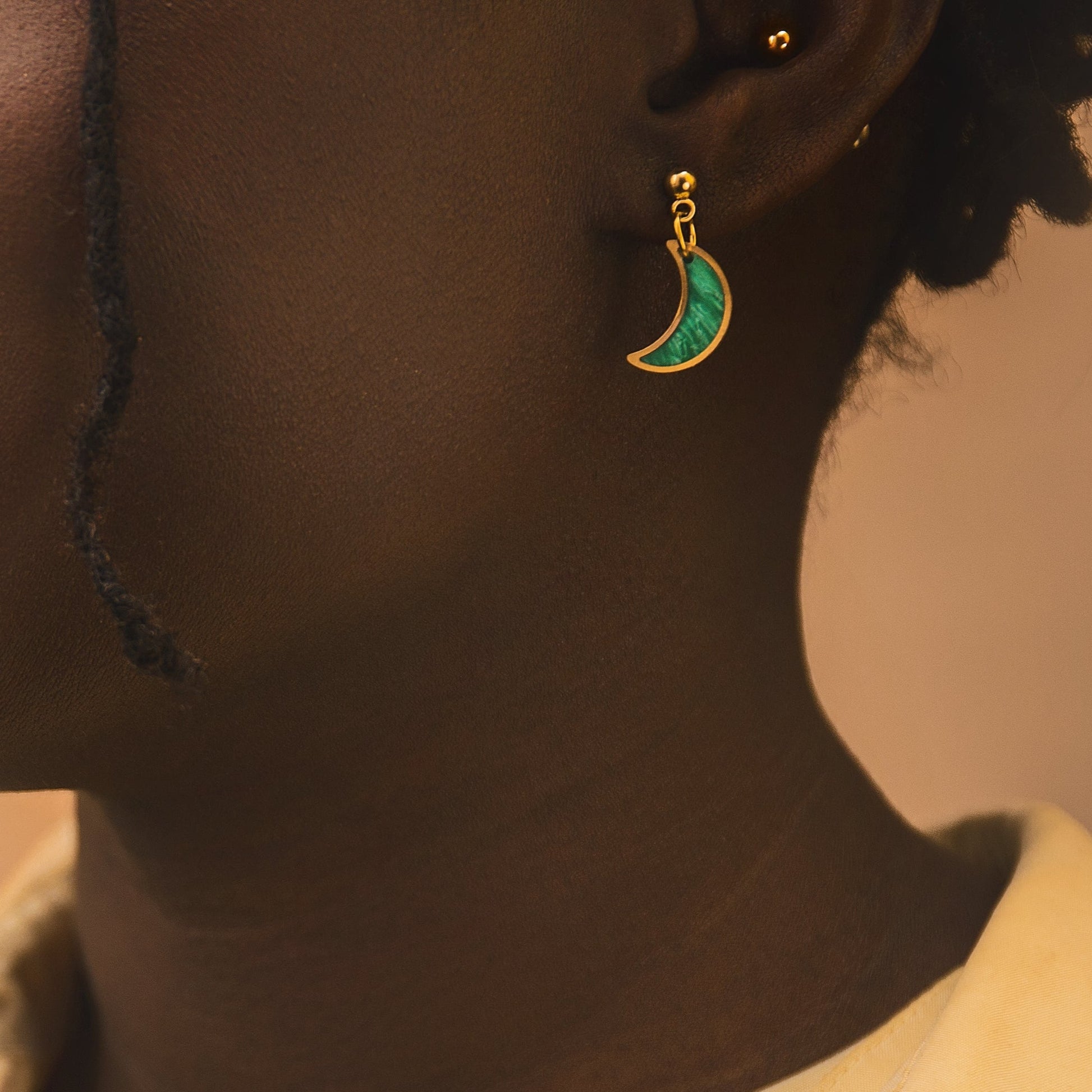 All of our jewellery is crafted by hand, so each has a unique finish making them one-of-a-kind pieces. The colour in the earring glows with vibrancy when the sun hits them.