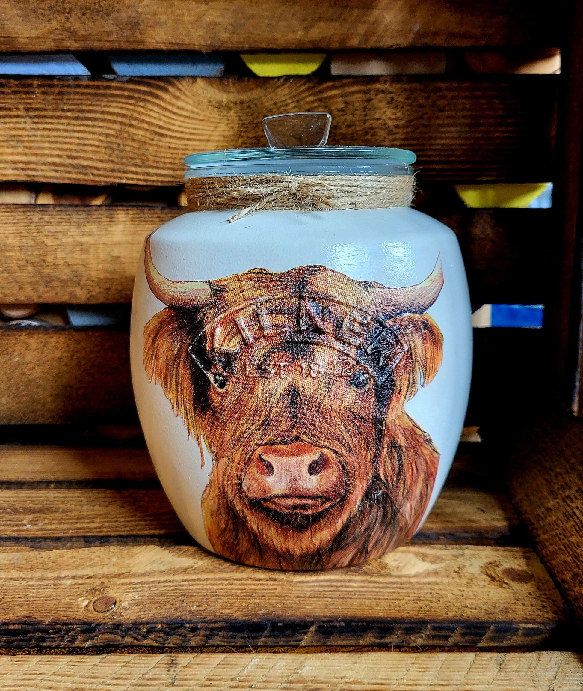Hand crafted, large glass cookie biscuit jar, available in various designs.