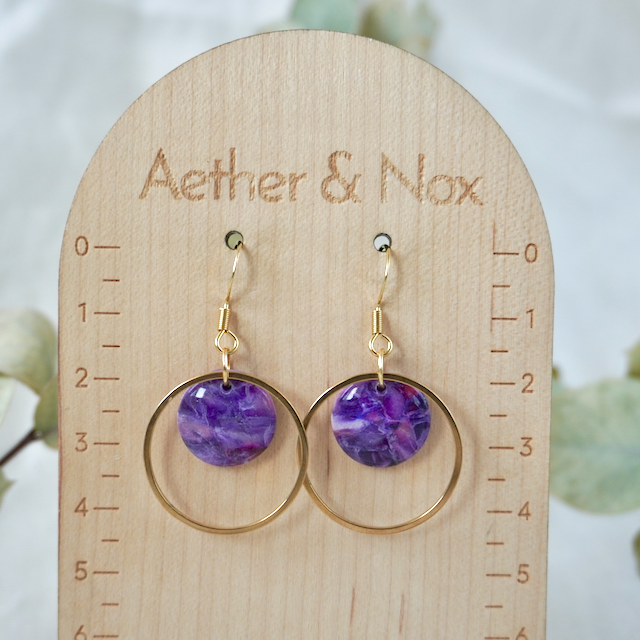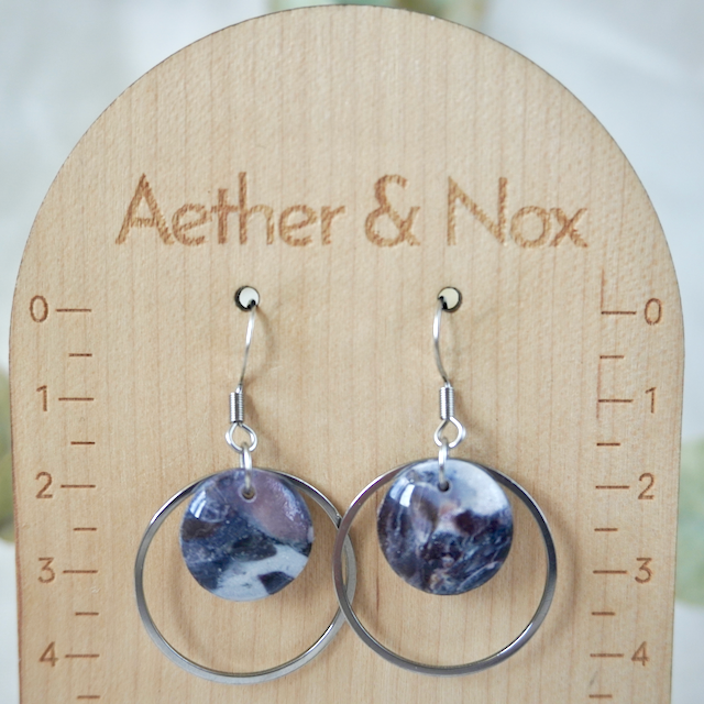 Materials - Polymer clay, clear UV resin and stainless steel fixings with optional rubber backs. These earrings will be provided on an Aether & Nox branded backing card