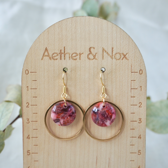 The creative process to craft the unique colour and stone like effect involves a mixture of translucent polymer clay, combined with an array of inks and metal leaf in such a way that achieves a one-of-a-kind finish. To complete the process, it is topped with a transparent resin to really highlight the colour and sparkle!
