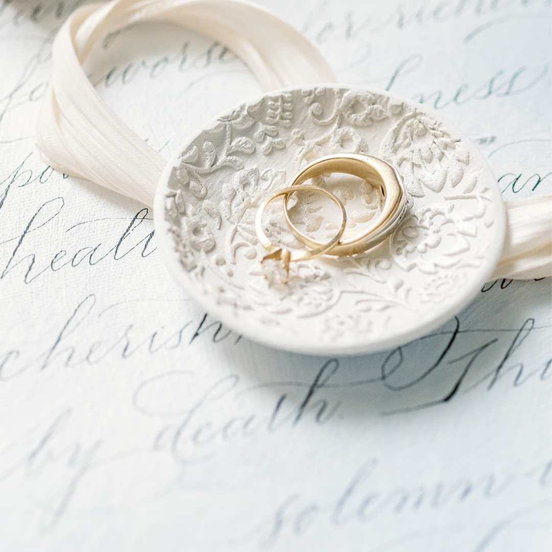 This beautiful, textured clay trinket dish is a stylish home for your rings, earrings, and other small trinkets.