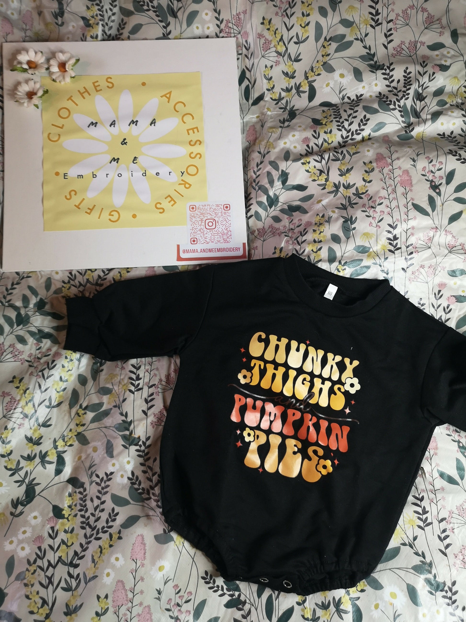 Halloween Autumn baby unisex soft chunky thighs and pumpkin pies sweater romper