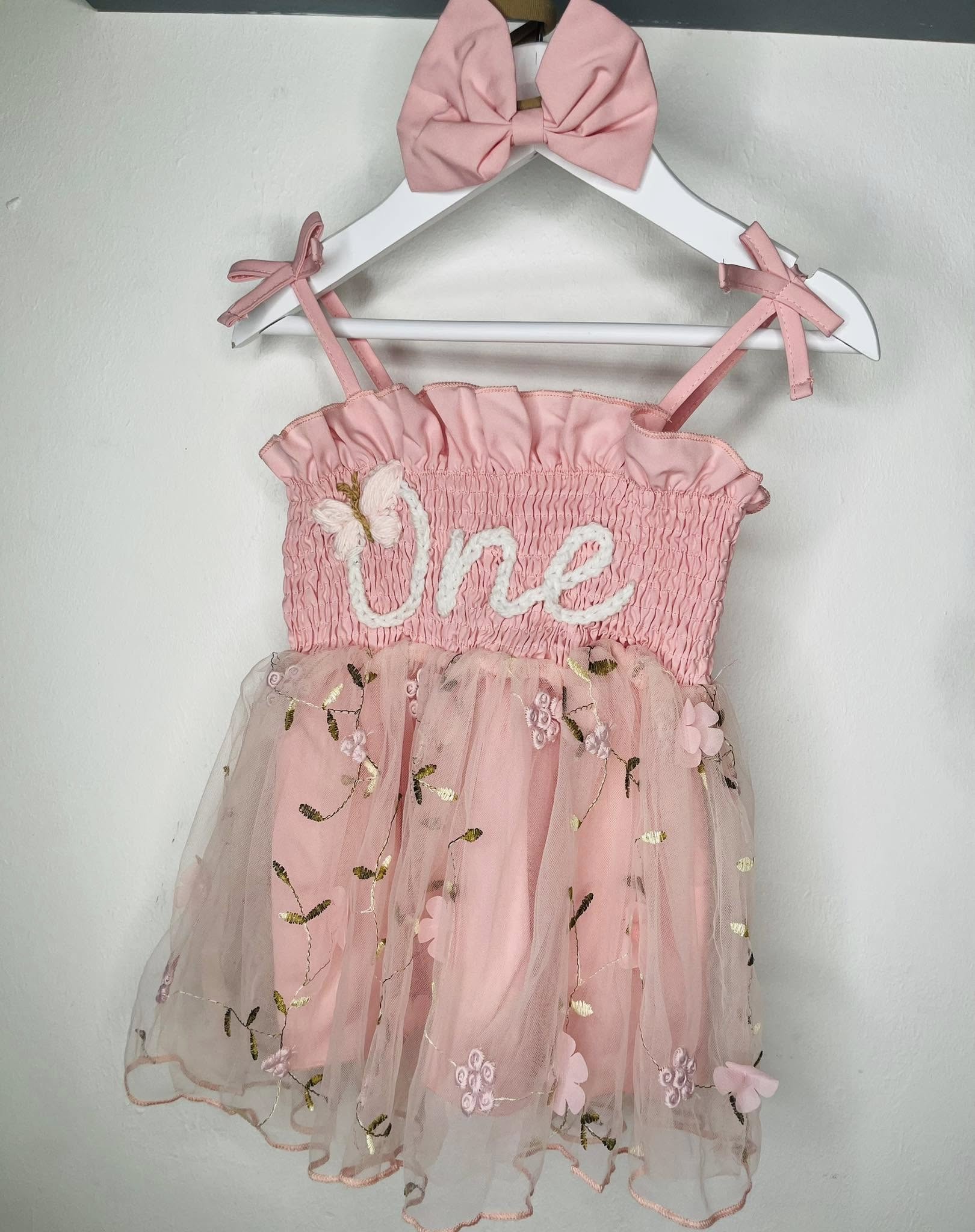 These would be perfect for birthday celebrations, photoshoots, days out, cake smashes and parties. These gorgeous hand embroidery tutu dress comes with a little matching bow headband. Made from polyester is the dress but it is super soft. Personalise with your child's name or age. Butterfly or other small design such as strawberries.