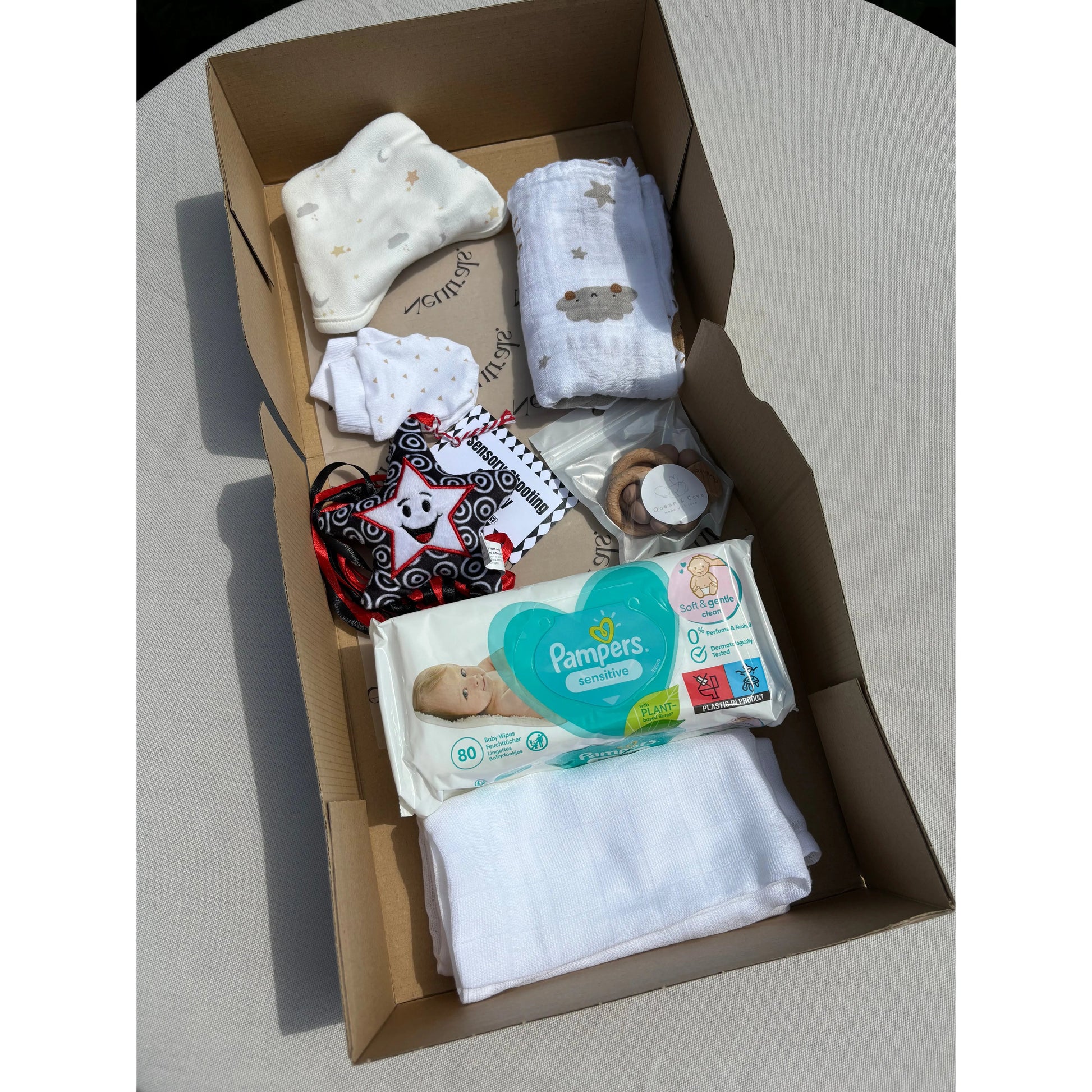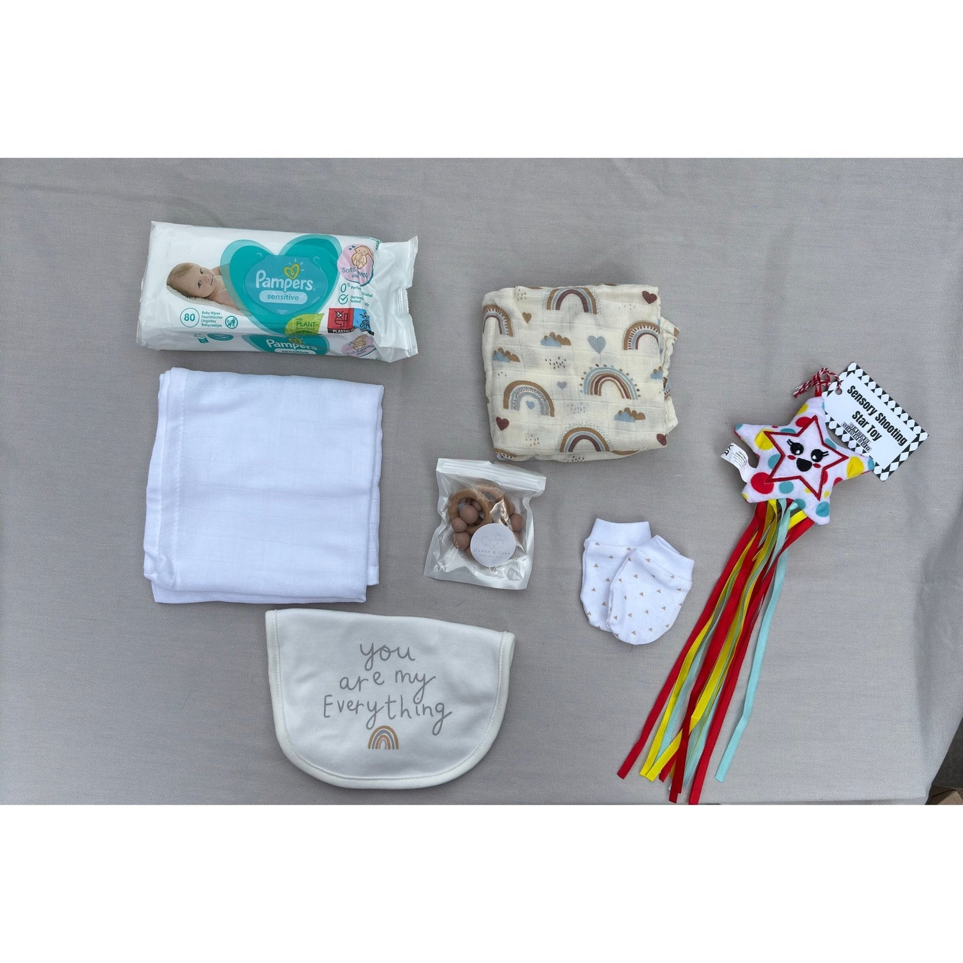 A beautiful and thoughtful bundle, lovingly curated for new arrivals. Whether you’re shopping for a baby shower or sending love to new parents, this care package is both practical and heartwarming.