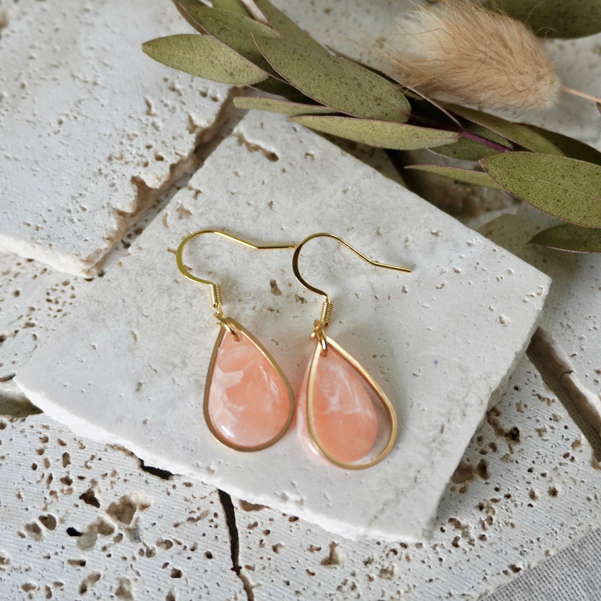 The creative process to craft the unique colour and stone like effect involves a mixture of translucent polymer clay, combined with an array of inks and metal leaf in such a way that achieves a one-of-a-kind finish. To complete the process, it is topped with a transparent resin to really highlight the colour and sparkle!