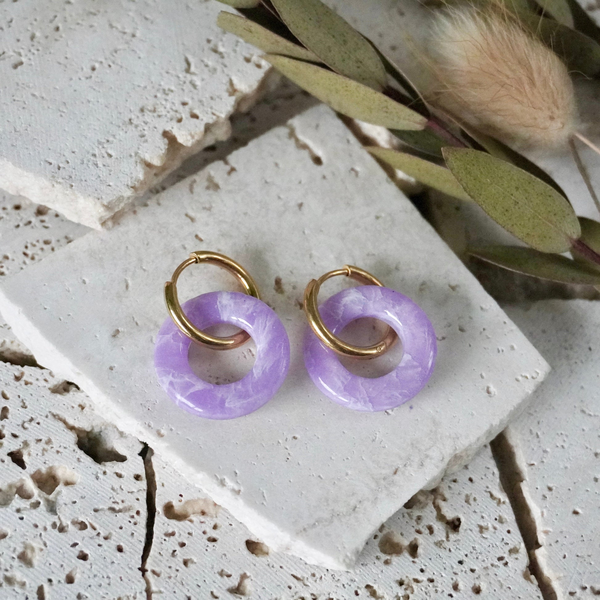 The creative process to craft the unique colour and stone like effect involves a mixture of translucent polymer clay, combined with an array of inks and metal leaf in such a way that achieves a one-of-a-kind finish. To complete the process, it is topped with a transparent resin to really highlight the colour and sparkle!