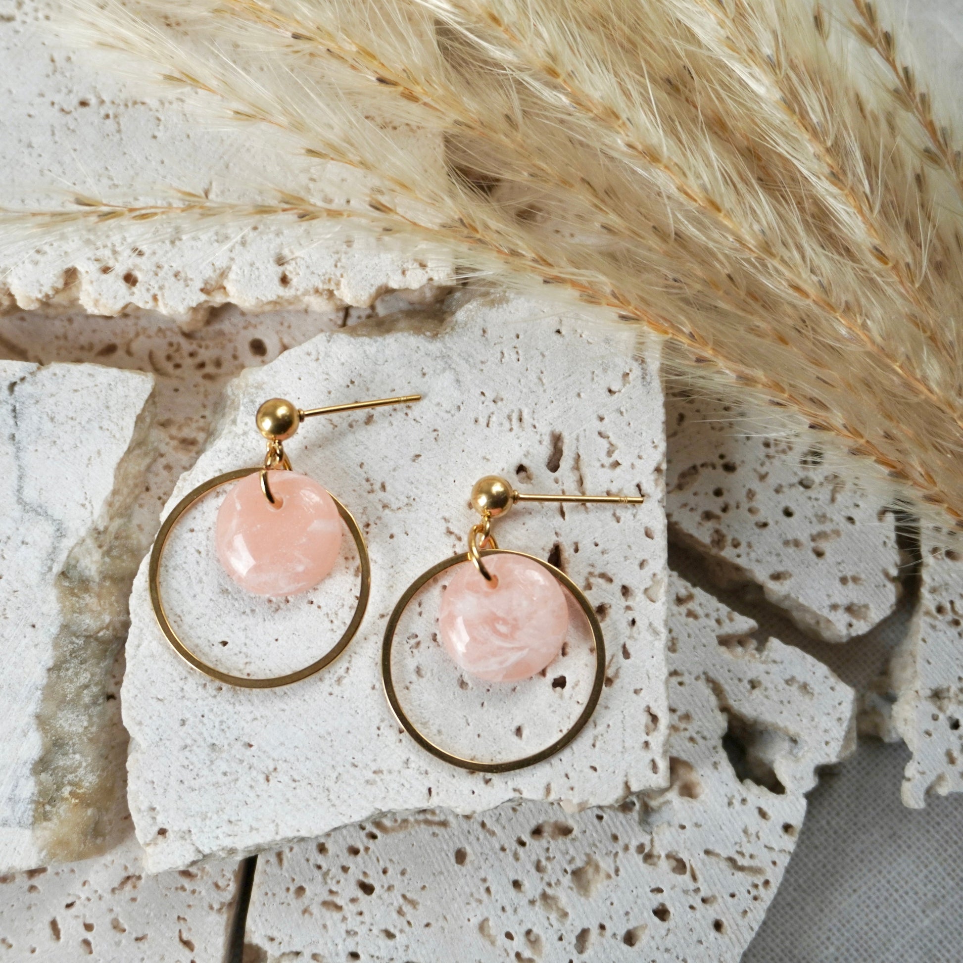 The creative process to craft the unique colour and stone like effect involves a mixture of translucent polymer clay, combined with an array of inks and metal leaf in such a way that achieves a one-of-a-kind finish. To complete the process, it is topped with a transparent resin to really highlight the colour and sparkle!