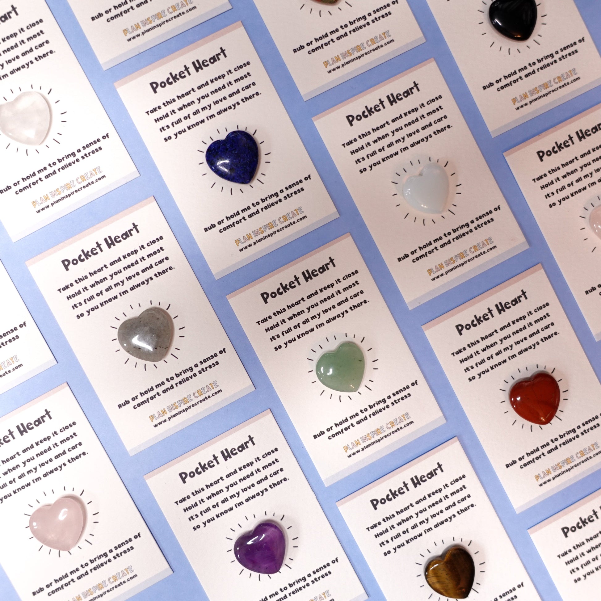 Introducing our Pocket Hearts - the perfect gift to show your love and support. Our pocket-sized hearts come in a variety of colours and patterns, each made from natural crystal gemstones. Whether it's for yourself or a loved one, this little worry stone is designed to bring comfort during moments of anxiety or stress. It's not just a thoughtful gift; it's a heartfelt reminder that you're always there for those you love.