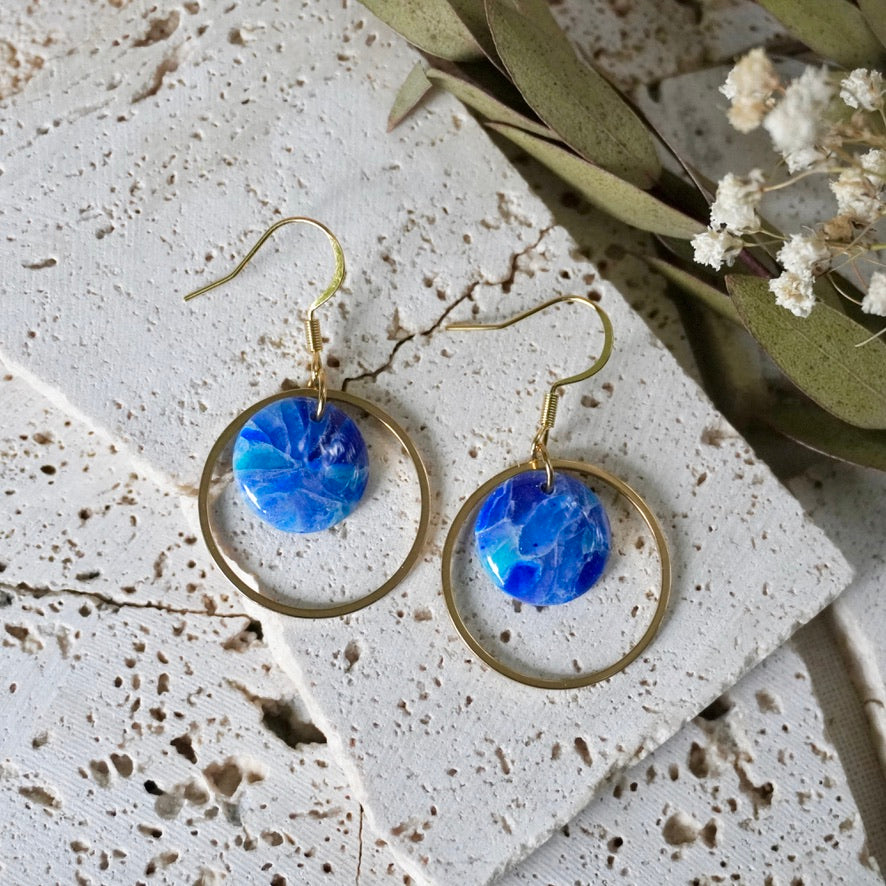 The creative process to craft the unique colour and stone like effect involves a mixture of translucent polymer clay, combined with an array of inks and metal leaf in such a way that achieves a one-of-a-kind finish. To complete the process, it is topped with a transparent resin to really highlight the colour and sparkle!
