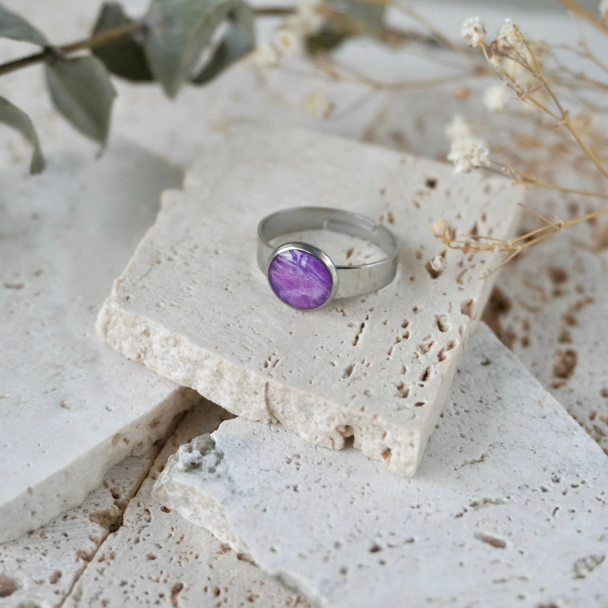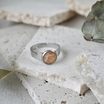 This item is an adjustable ring in a selection of colours. All our rings are created with stainless steel to ensure reactions and tarnishing are kept to a minimum. The rings will adjust with either a simple squeeze or a simple stretch of the band to almost any sized finger. This is ideal for those days when your rings just won't budge!