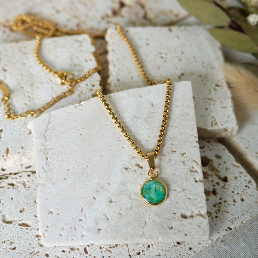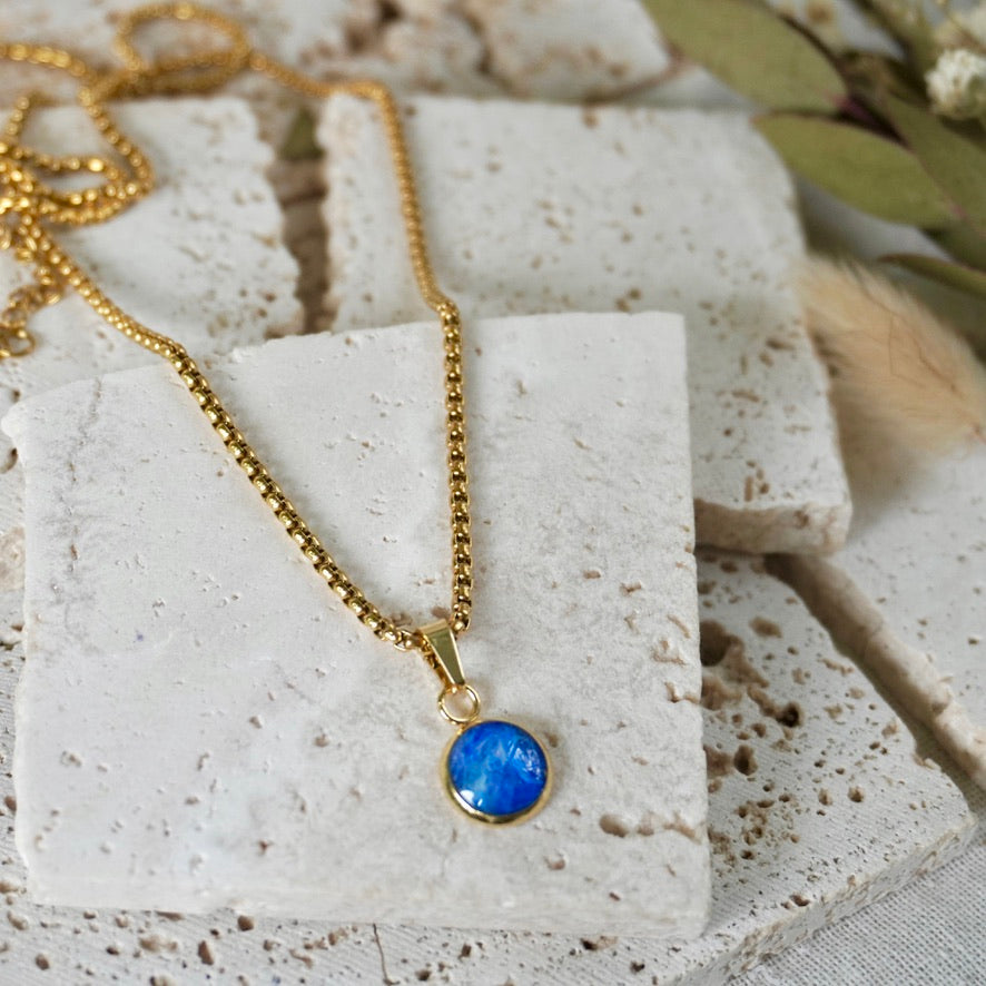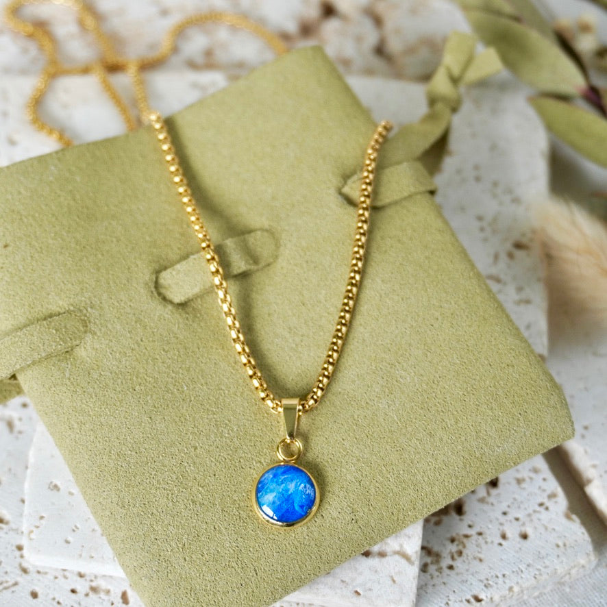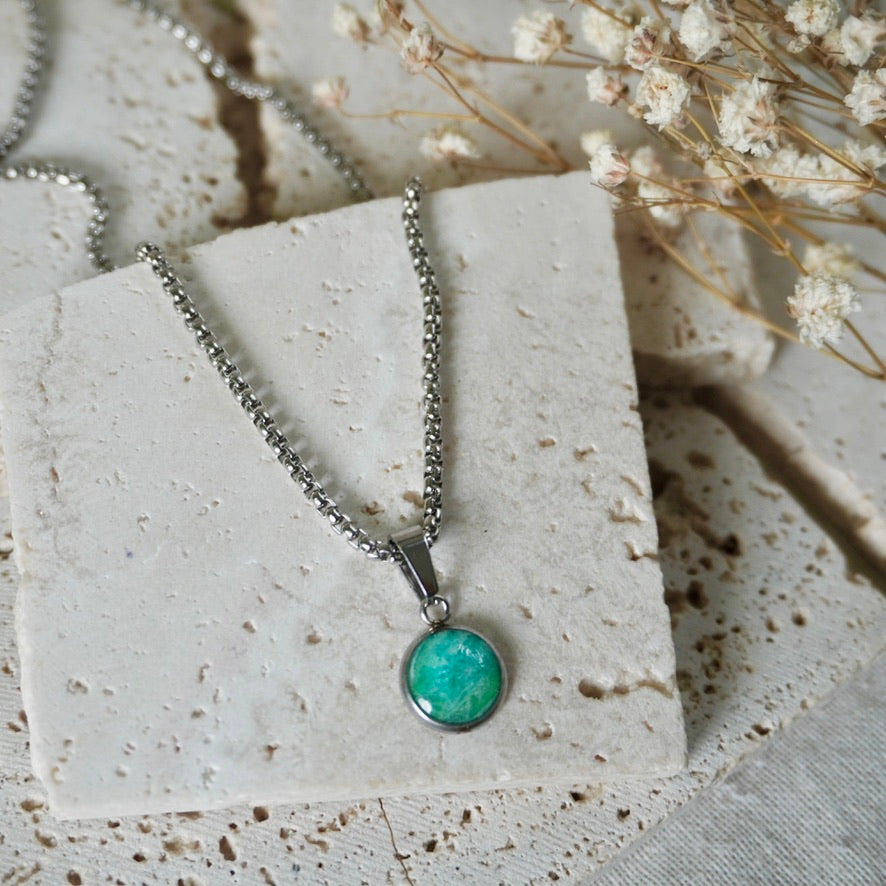 The stone of the pendant is crafted by hand, giving it a unique finish. On a 45cm (18 inches) chain and boasts a 12mm diameter stone. The chain can also be adjusted up to 50cm (20 inches).
