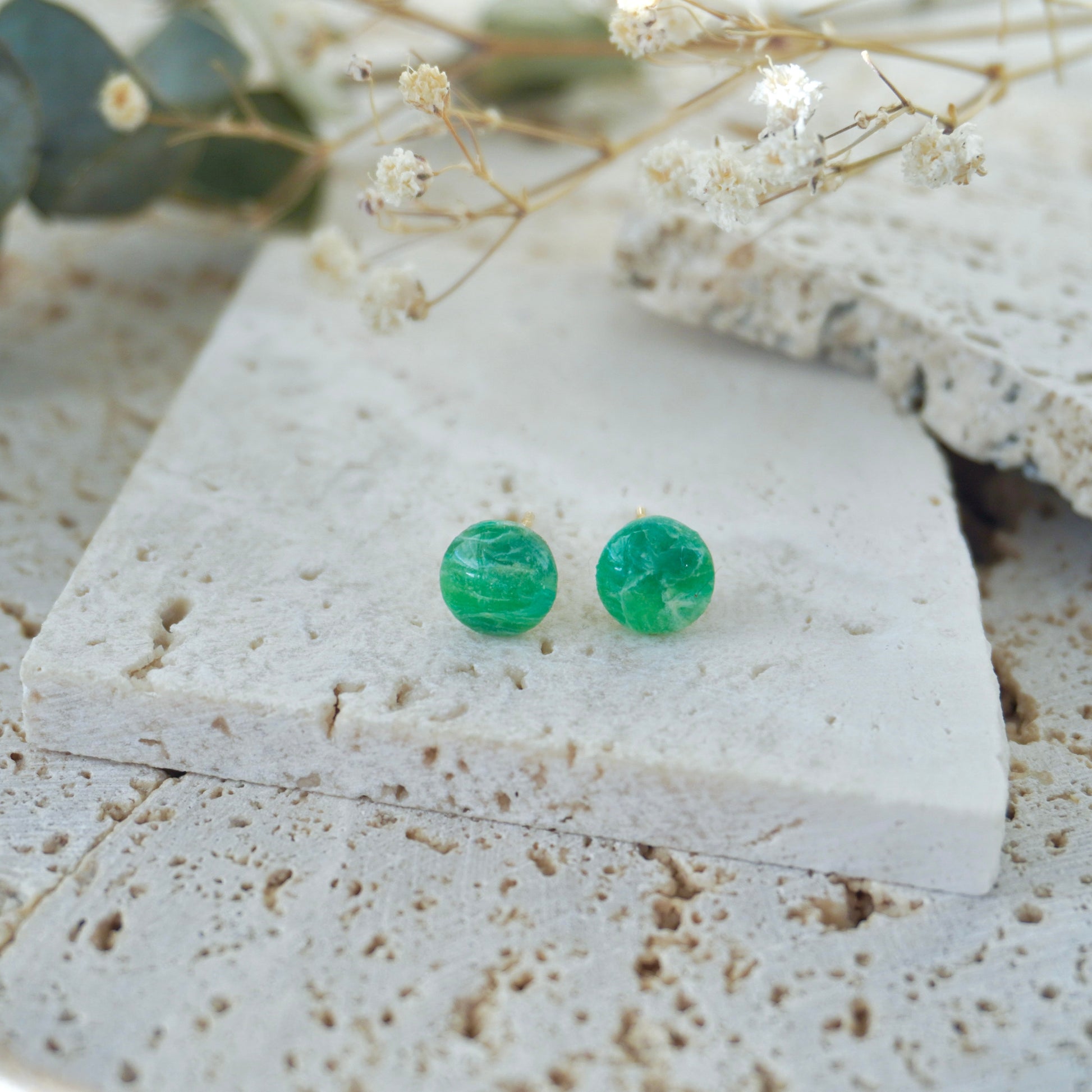 All of our jewellery is crafted by hand, so each has a unique finish making them one-of-a-kind pieces. The colour in the earring glows with vibrancy when the sun hits them.