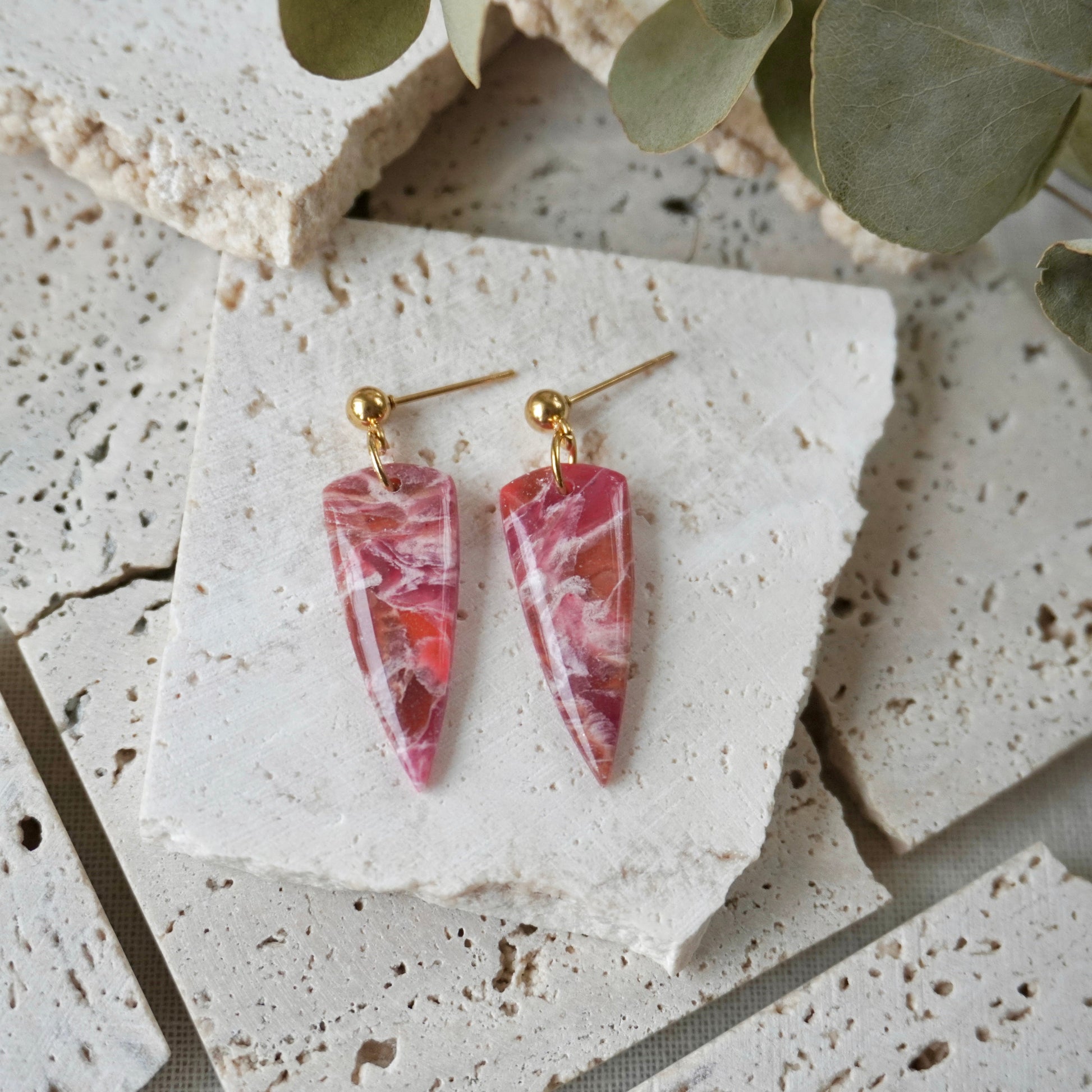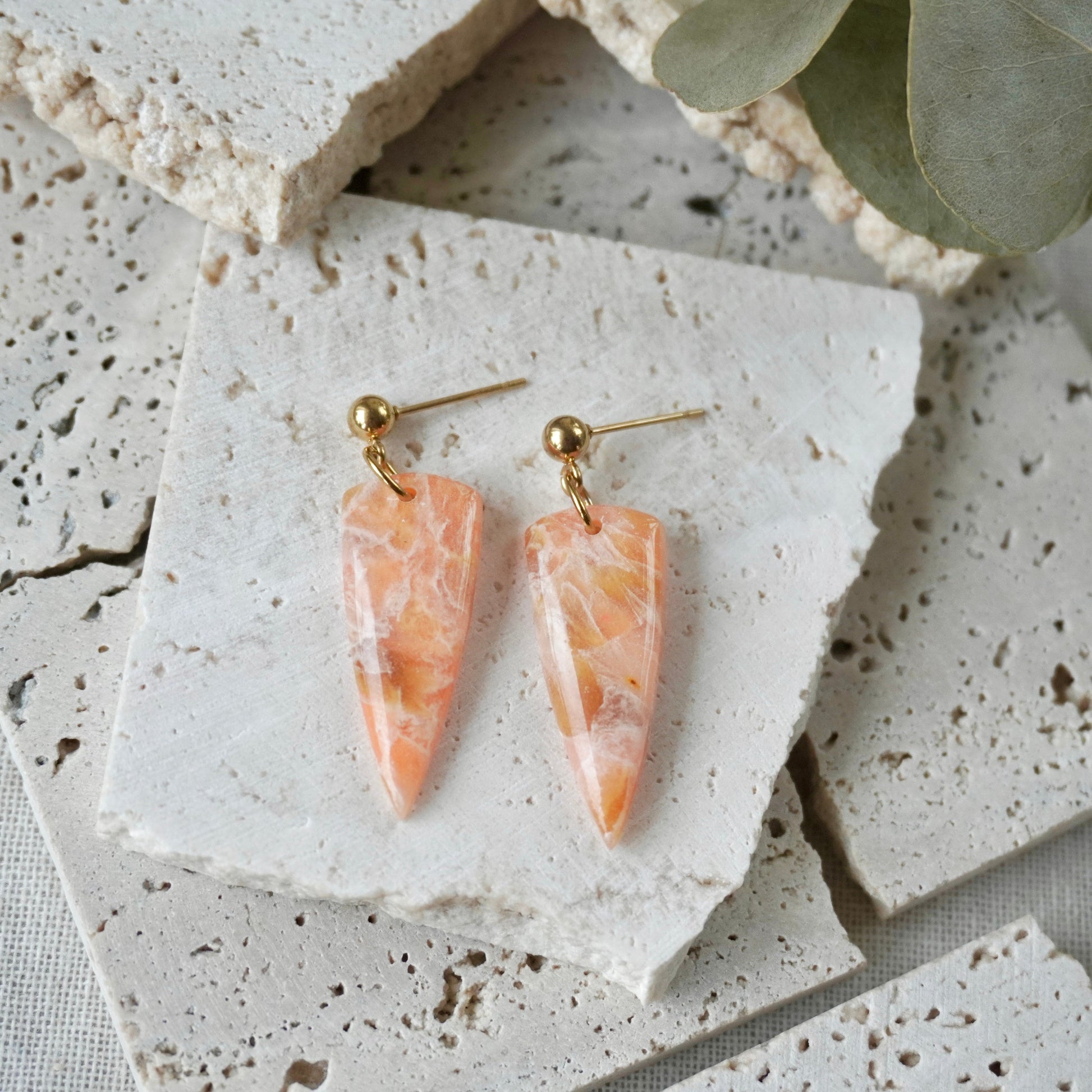 All of our jewellery is crafted by hand, so each has a unique finish making them one-of-a-kind pieces. The colour in the earring glows with vibrancy when the sun hits them.