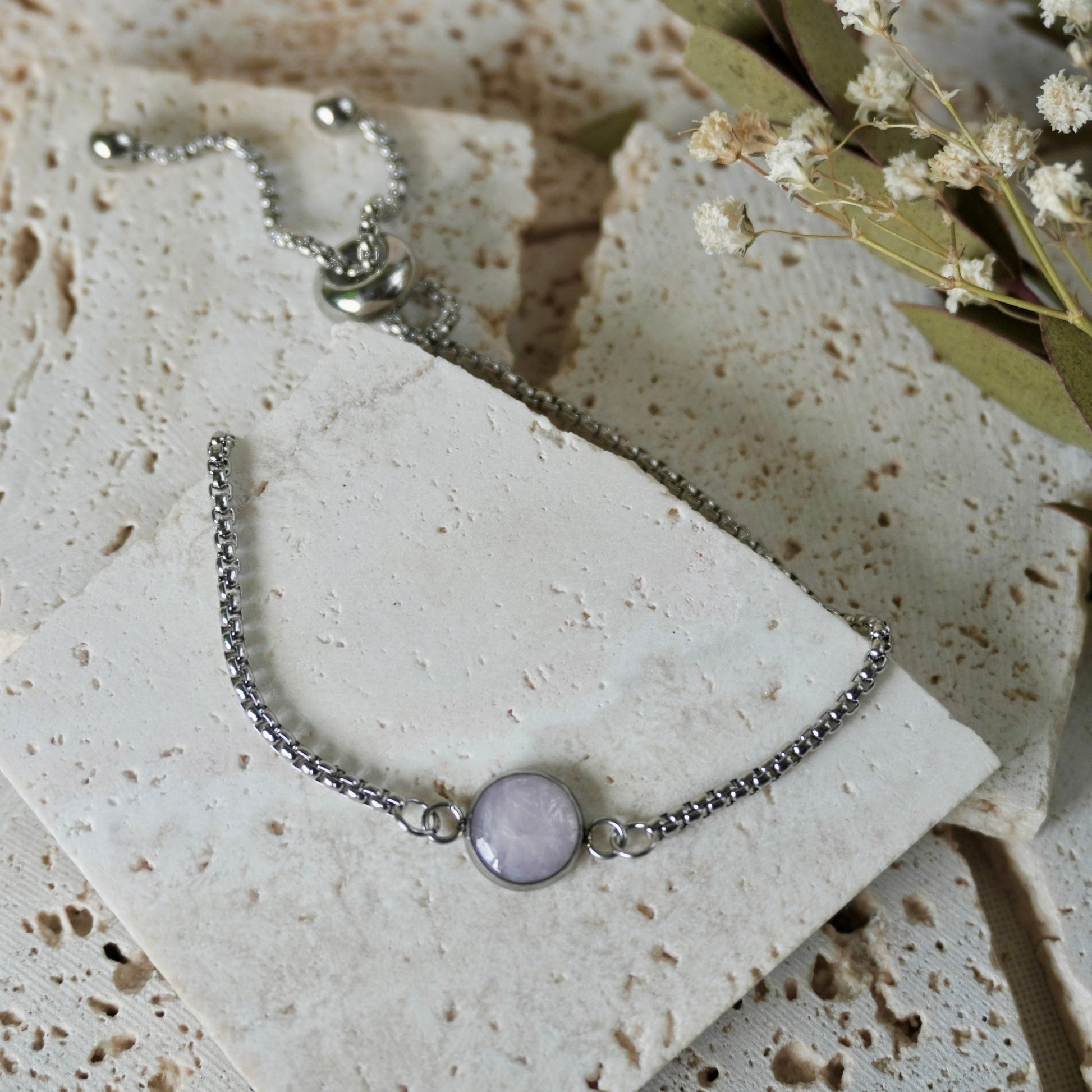 These demure bracelets are the ultimate self-gift! The central 10mm 'stone' just dazzles across the thin yet strong bracelet chain. Handcrafted with care, the stone promises a unique look. The 22cm chain and donut clasp makes it adjustable. A stargazer's dream!