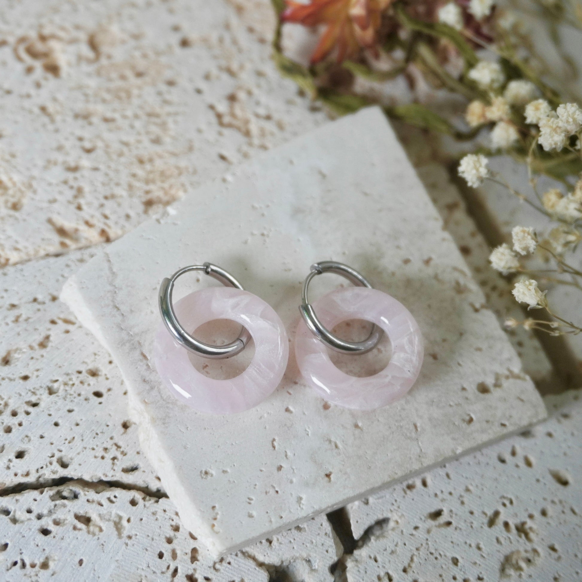 The creative process to craft the unique colour and stone like effect involves a mixture of translucent polymer clay, combined with an array of inks and metal leaf in such a way that achieves a one-of-a-kind finish. To complete the process, it is topped with a transparent resin to really highlight the colour and sparkle!