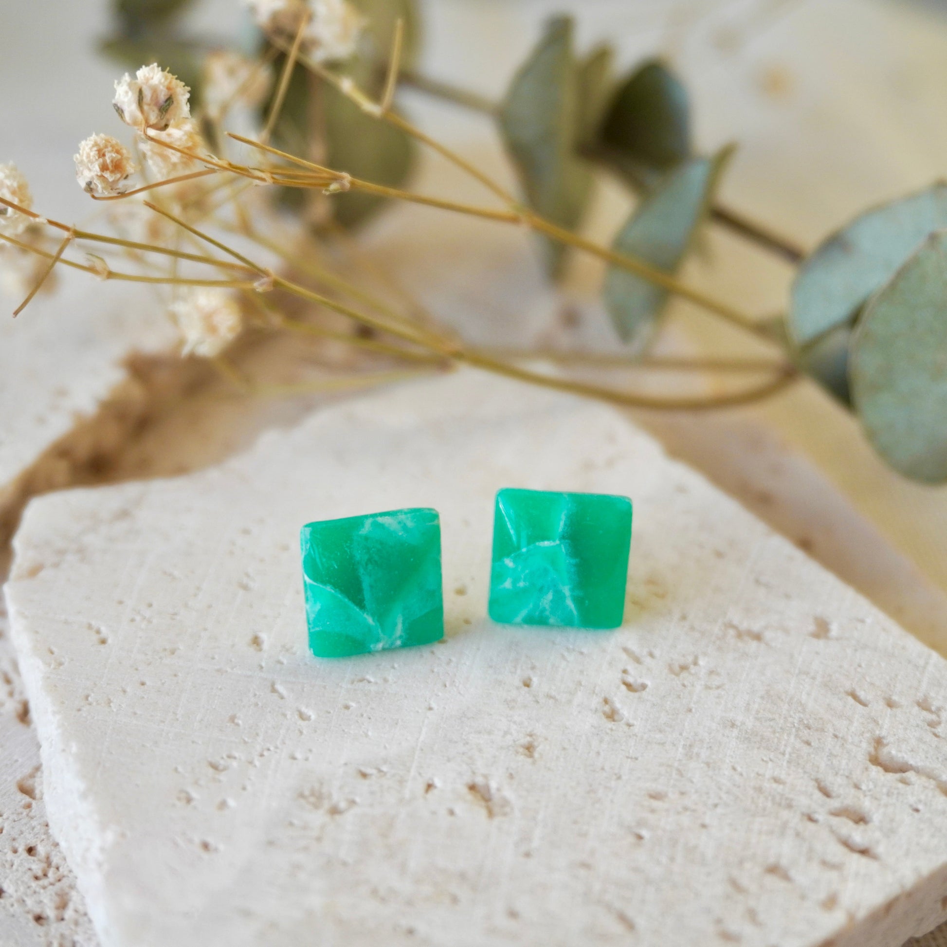 Materials - Polymer clay, clear UV resin and stainless steel fixings with optional rubber backs. These earrings will be provided on an Aether & Nox branded backing card