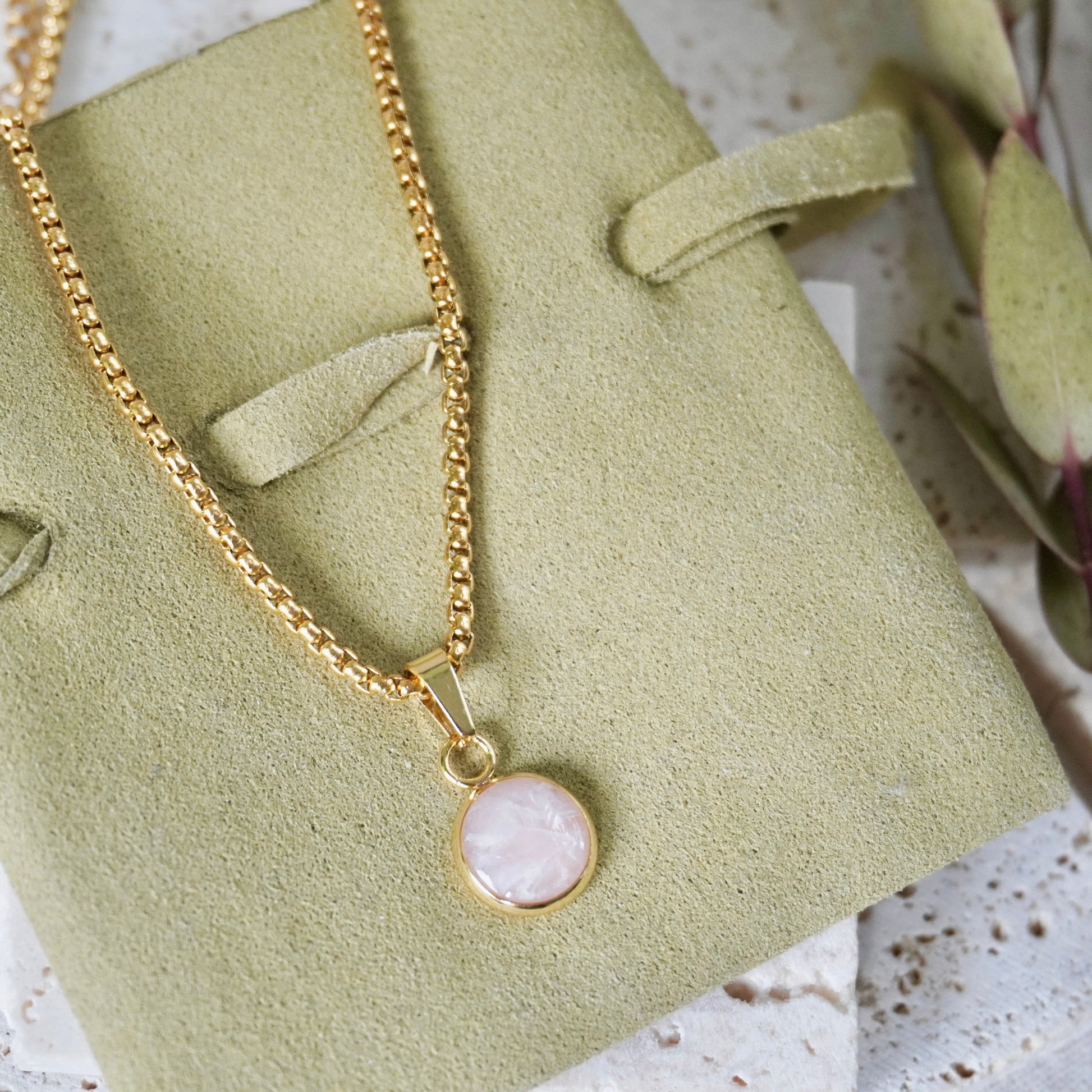 The stone of the pendant is crafted by hand, giving it a unique finish. On a 45cm (18 inches) chain and boasts a 8mm diameter stone. The chain can also be adjusted up to 50cm (20 inches).