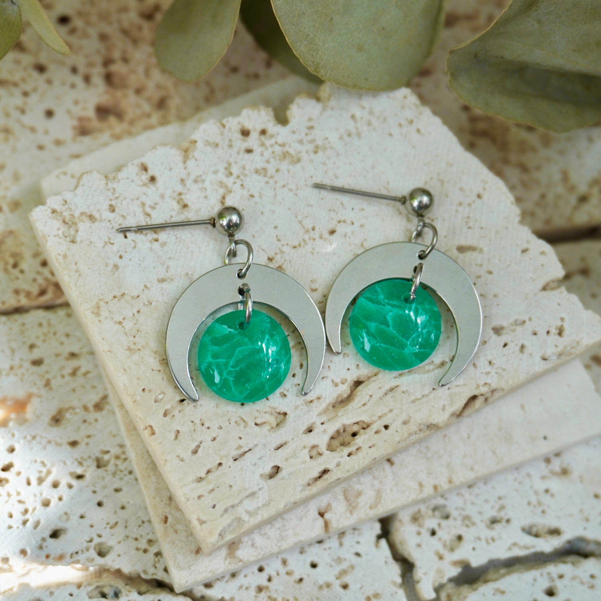 Materials - Polymer clay, clear UV resin and stainless steel fixings with optional rubber backs. These earrings will be provided on an Aether & Nox branded backing card