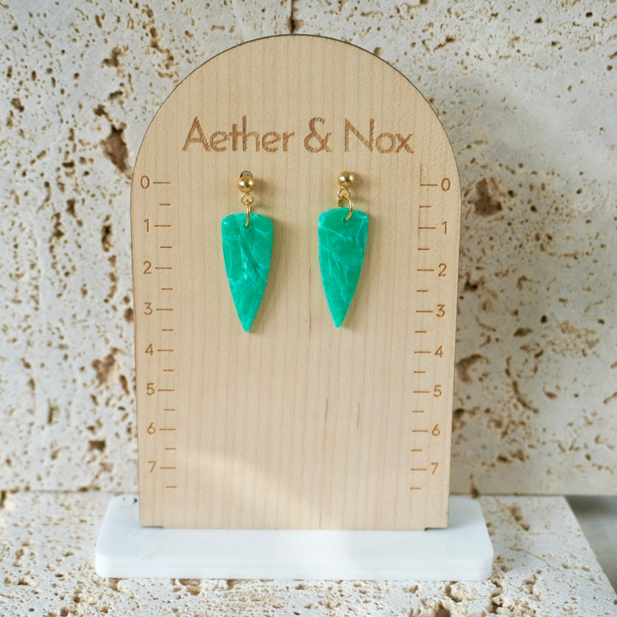 All of our jewellery is crafted by hand, so each has a unique finish making them one-of-a-kind pieces. The colour in the earring glows with vibrancy when the sun hits them.