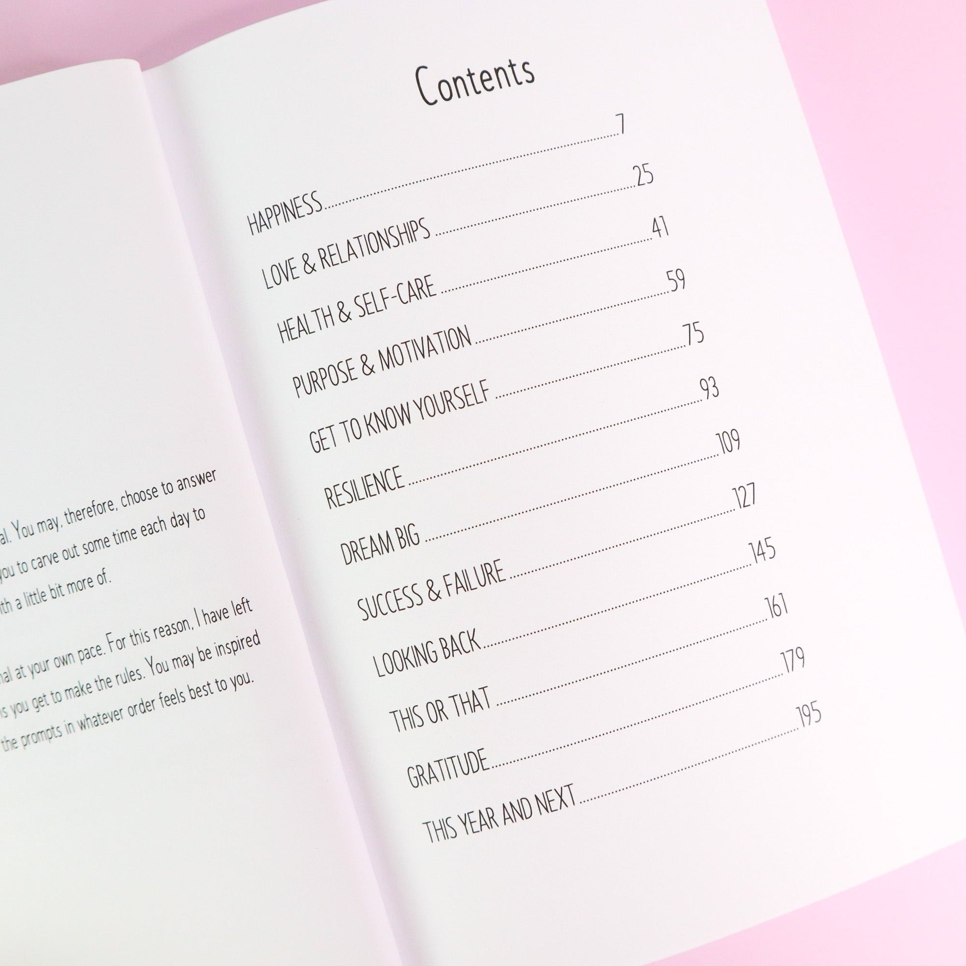 There are 365 reflective journal prompts within this journal. You may, therefore, choose to answer a question per day. This is a great approach as it helps you to carve out some time each day to pause and focus on you - something we could all do with a little bit more of.