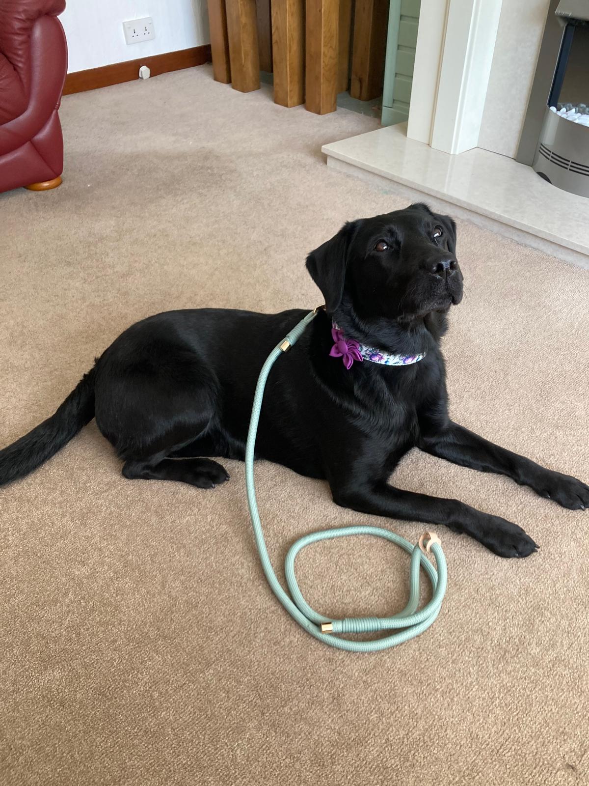 Flexible and lightweight rope dog leash in a lovely Elphaba inspired sage green colour. Made from sturdy rope with rose gold hardware. Lockable clasp. Has leather D-ring for attachments such as poo bags, treat pouches etc. Perfect colour to compliment our Bonnie collection.