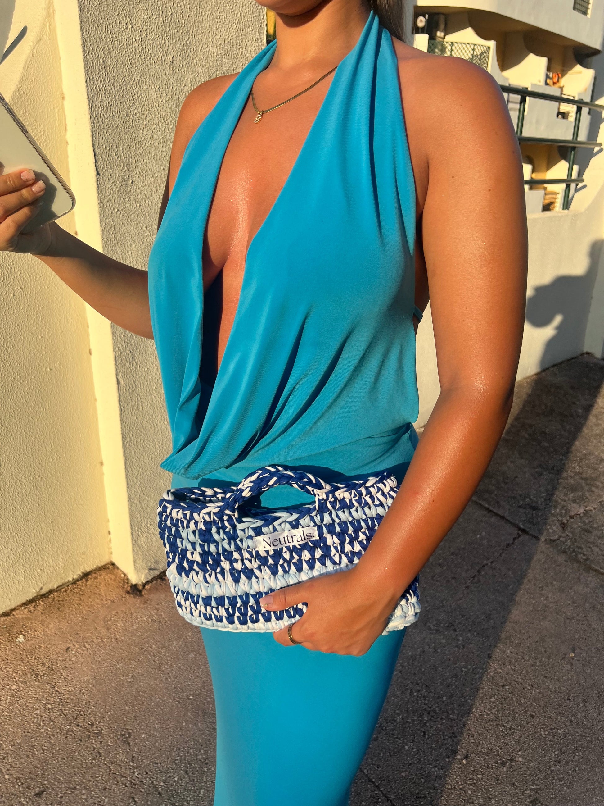 Add a touch of effortless elegance to your outfit with this unique, handmade handbag. Crafted from soft, sturdy T-shirt yarn in blues and white blend, it’s the perfect statement piece for special moments or everyday style.
