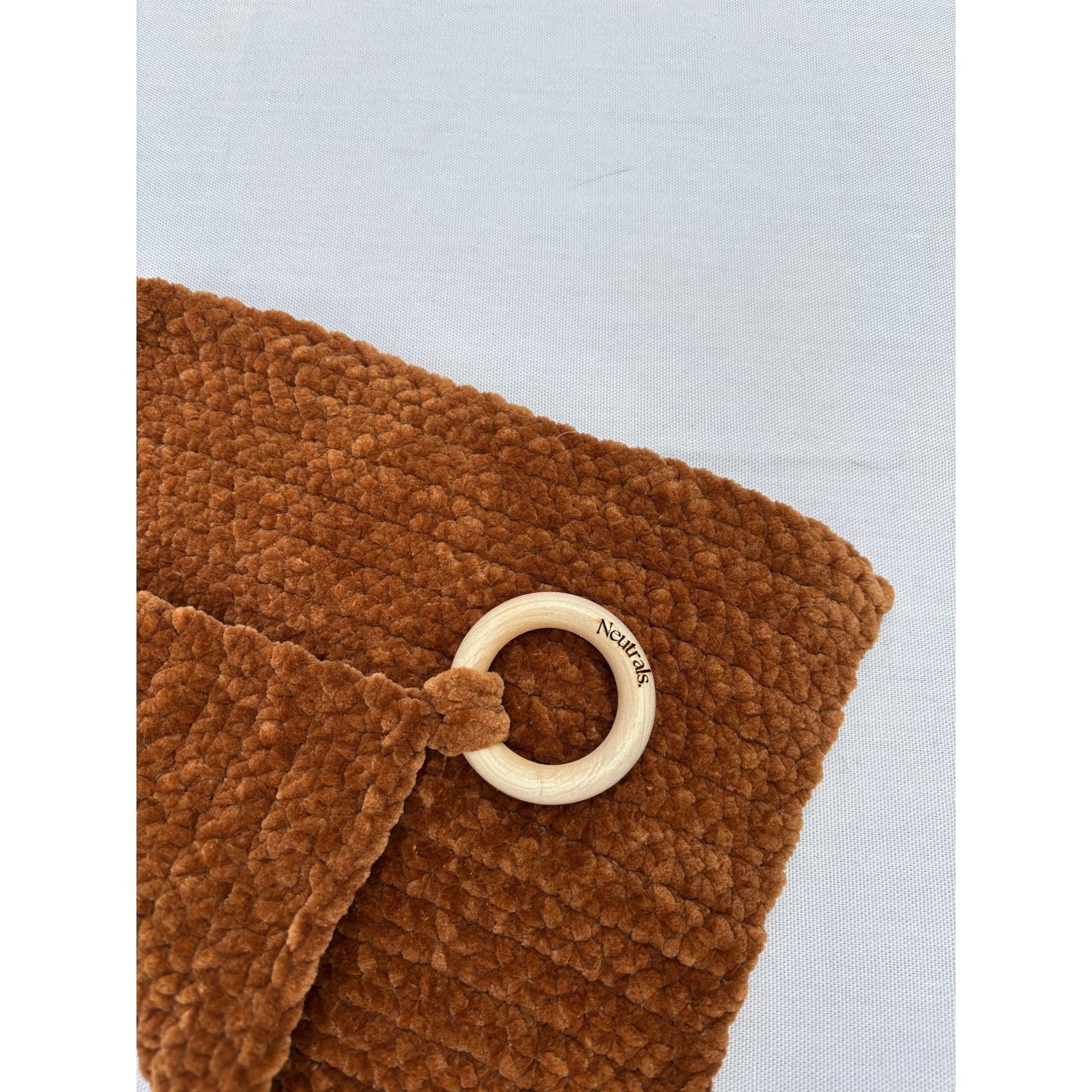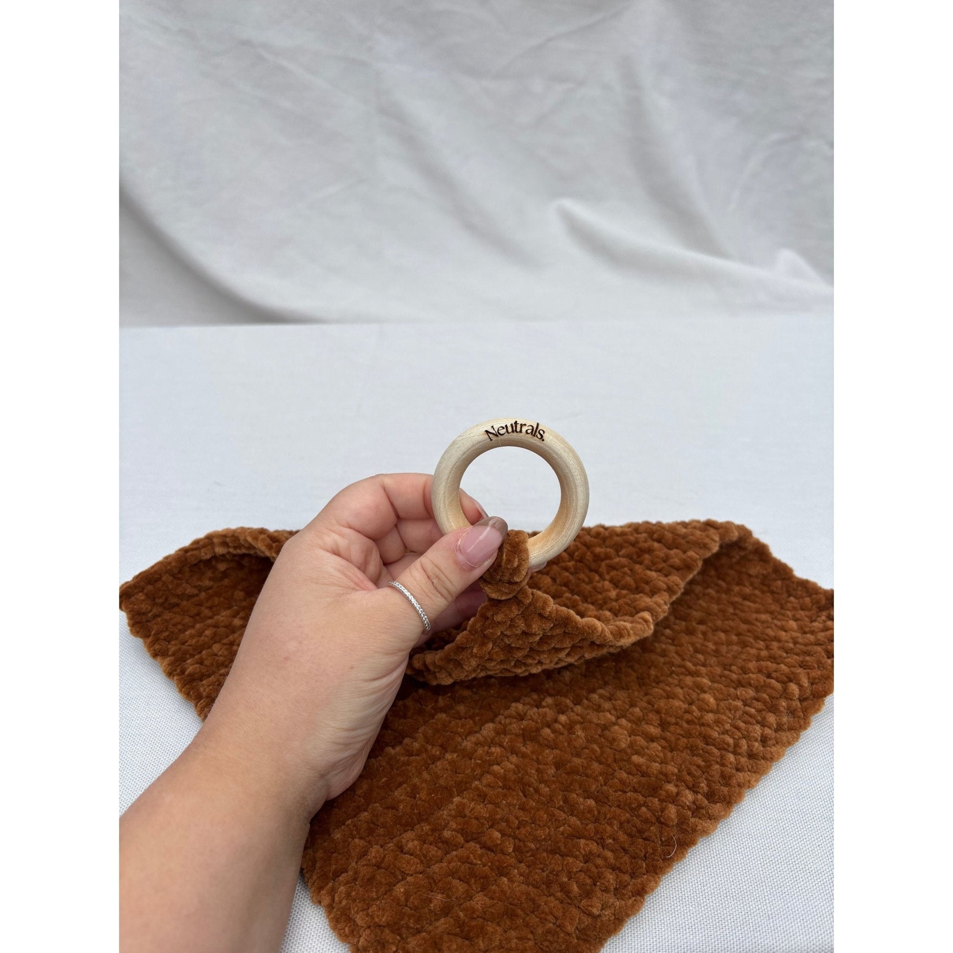 Soft Baby Comforter – Neutral Handmade with Wooden Ring