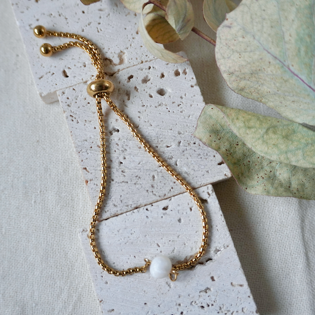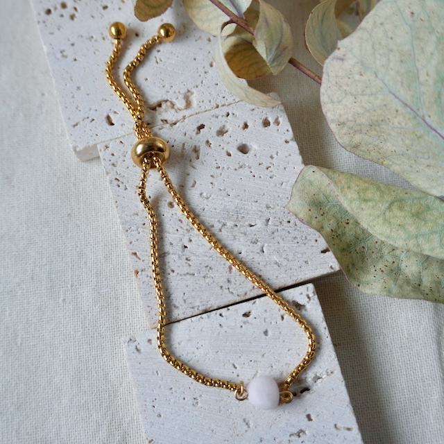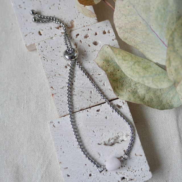 These demure bracelets are the ultimate self-gift! The central 10mm 'stone' just dazzles across the thin yet strong bracelet chain. Handcrafted with care to ensure an organic feel, each stone promises a unique look. The 22cm chain and donut clasp makes it adjustable. A stargazer's dream!