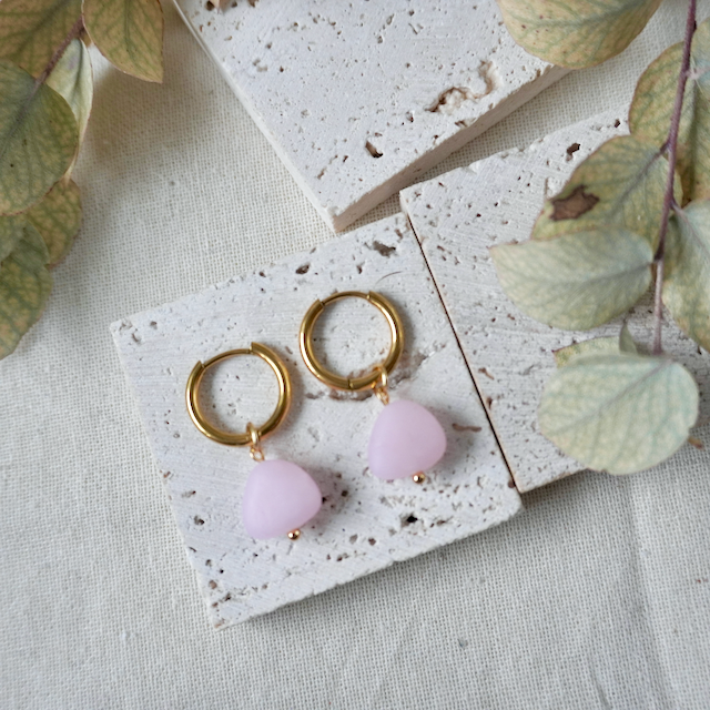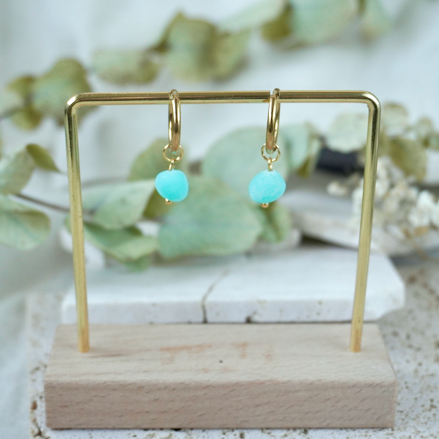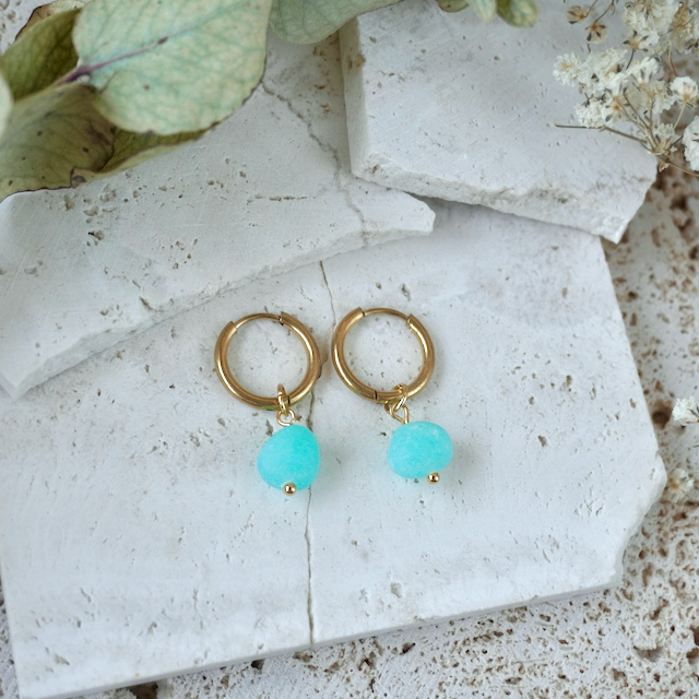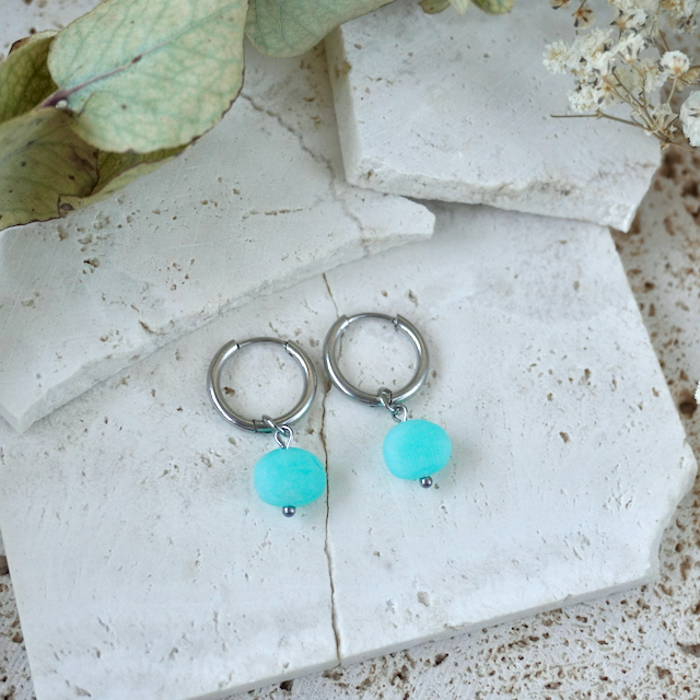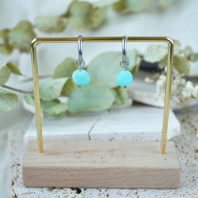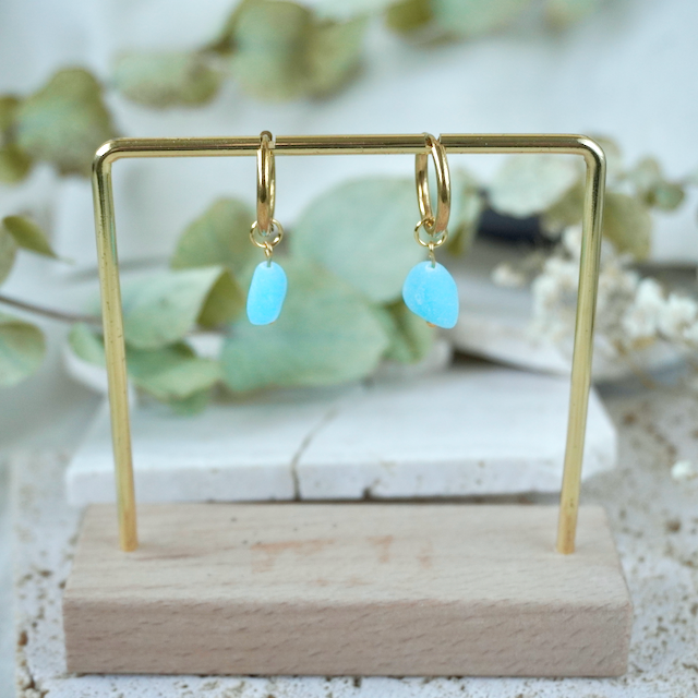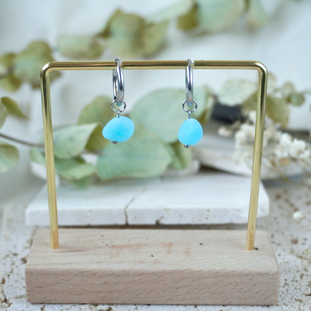 All of our jewellery is crafted by hand, so each has a unique finish making them one-of-a-kind pieces. The colour in the earring glows with vibrancy when the sun hits them.