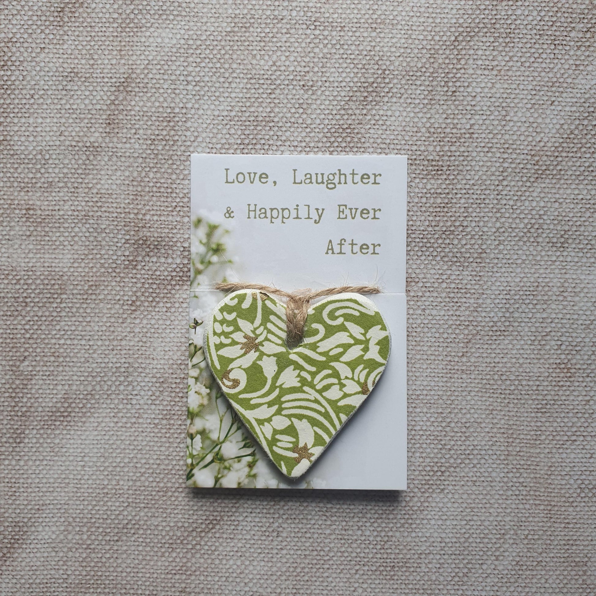 Wedding Pocket Token - Green & Gold Clay Heart - Love, Laughter, Happily Ever After Wedding Gift