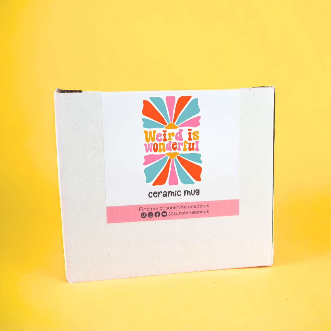 This retro mug is a celebration of YOU! The vibrant boho flower and the message "Weird is Wonderful" is a reminder that your quirks and individuality are what make you so amazing.